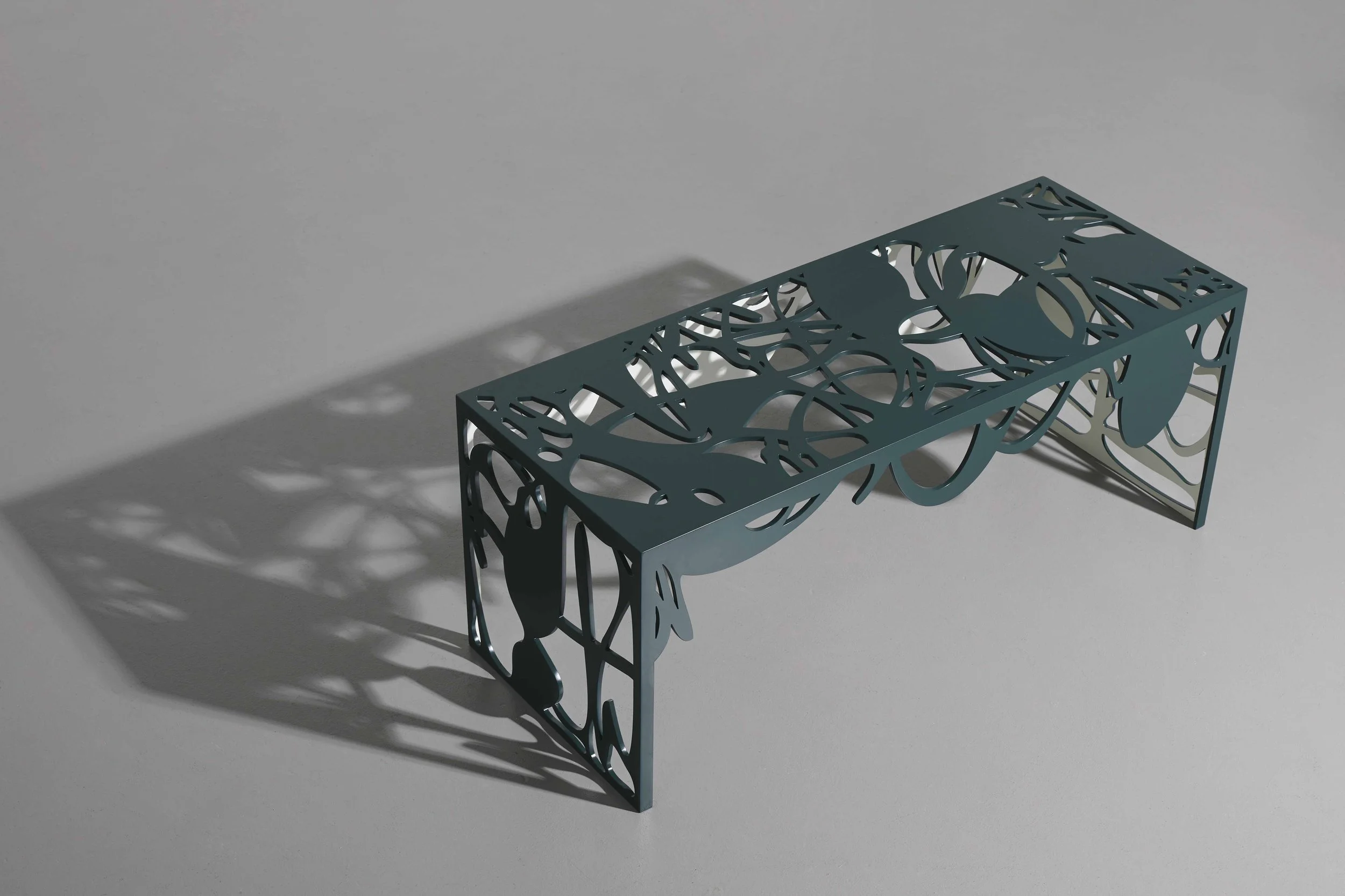As a further invitation to slow down, the artist has designed benches for the exhibition. Reminiscent of his word drawings and cut from steel, they are evocative of tangled branches and the forest’s organic layering. Barford says: "These works are an invitation to slow down, I wanted to create an oasis of calm in contrast to the velocity of the 21st Century life".