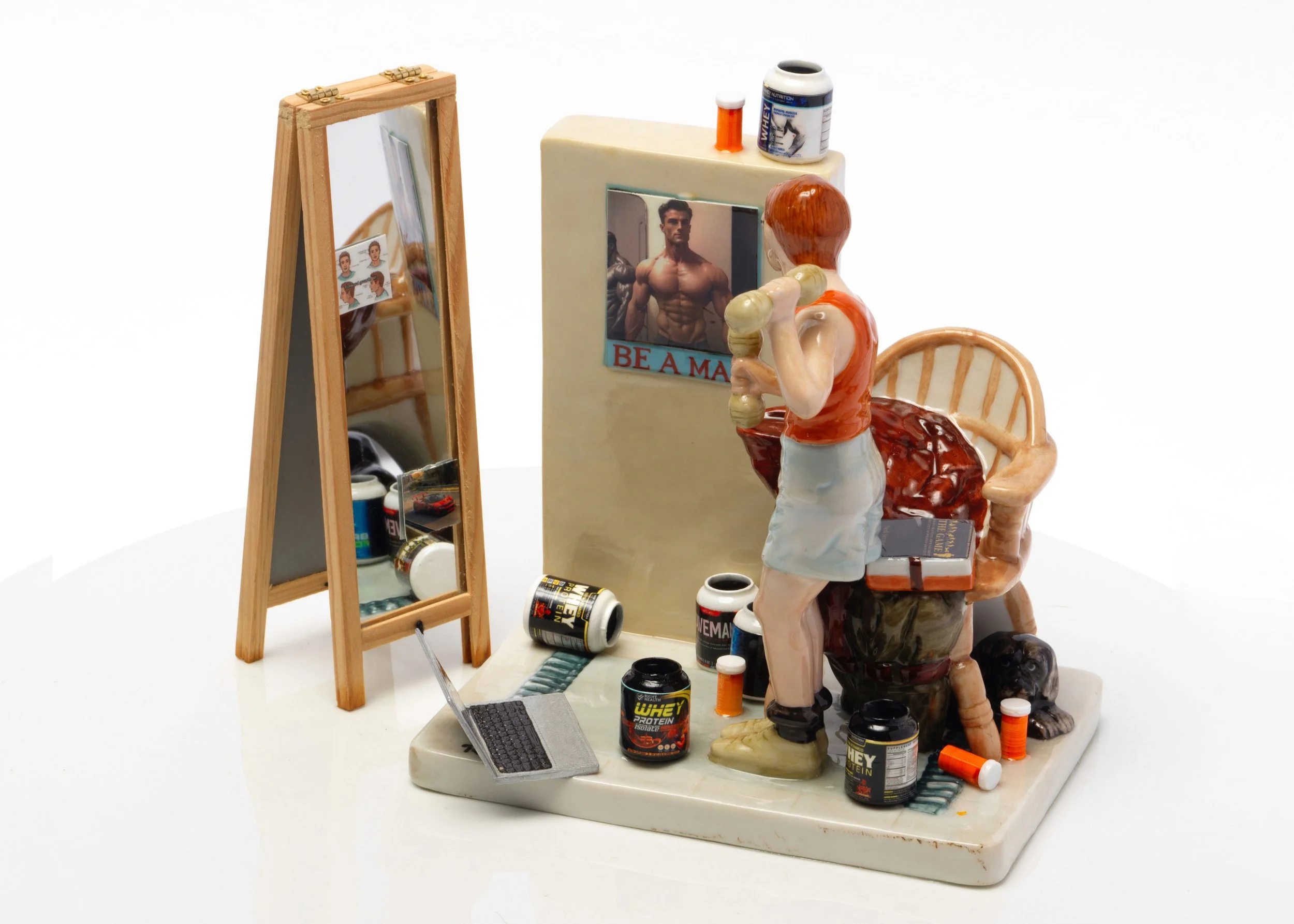 Spanning 35 ceramic sculptures and several large-scale drawings, the exhibition brings together a body of work exploring how we are coping a quarter of the way through the 21st century – a time marked by psychological overload, acceleration and a pervasive sense of inertia.
