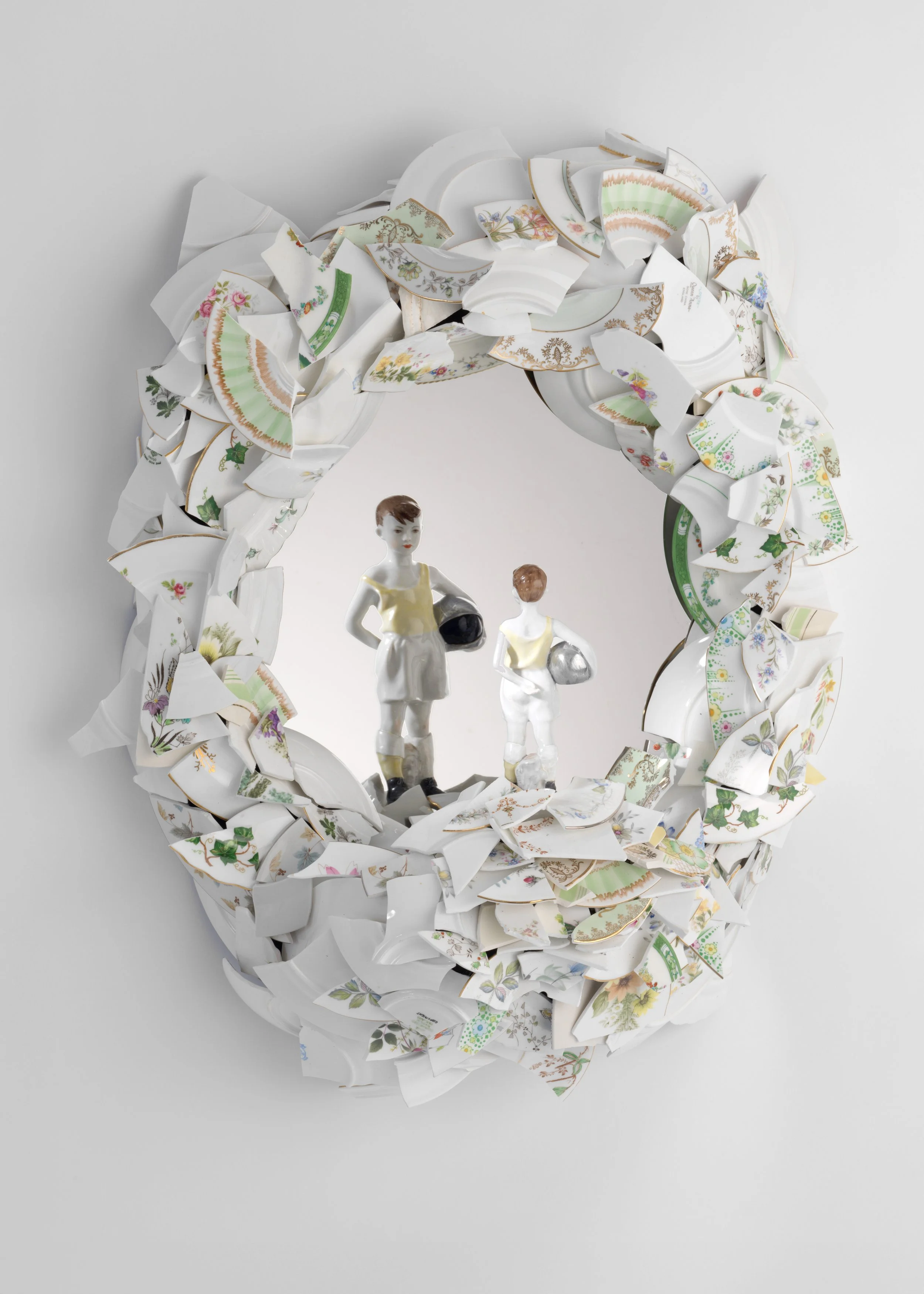 BARNABY BARFORD Mirror ''Is it permanent?!'' Wood, wire, found ceramic objects, convex mirror View details →