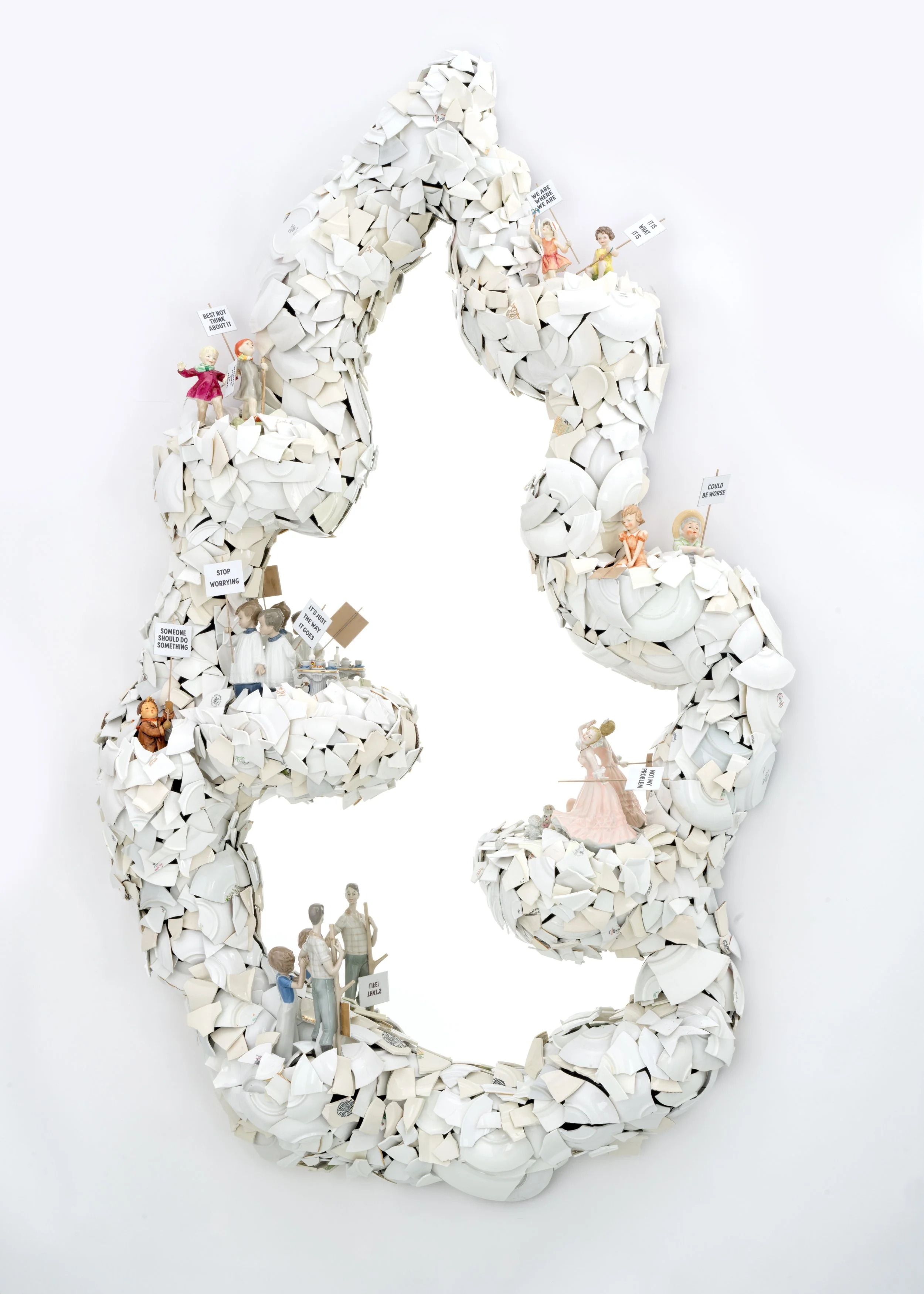 BARNABY BARFORD Mirror ''Who wants it?!'' Wood, wire, found ceramic objects, convex mirror View details →