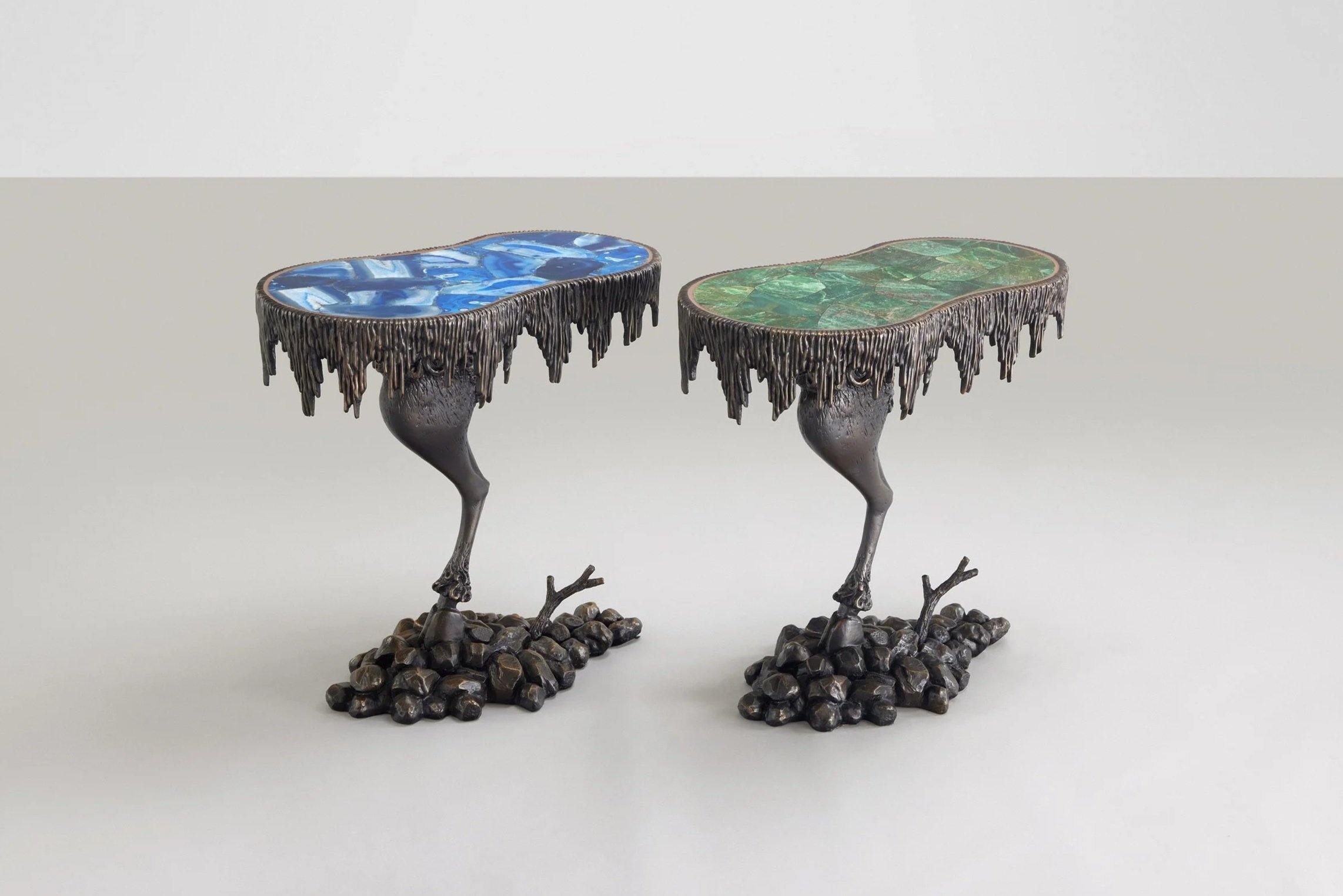 FRANCIS SULTANA Gueridon ‘Narnia’ Patinated bronze, blue marble Patinated bronze, green marble
