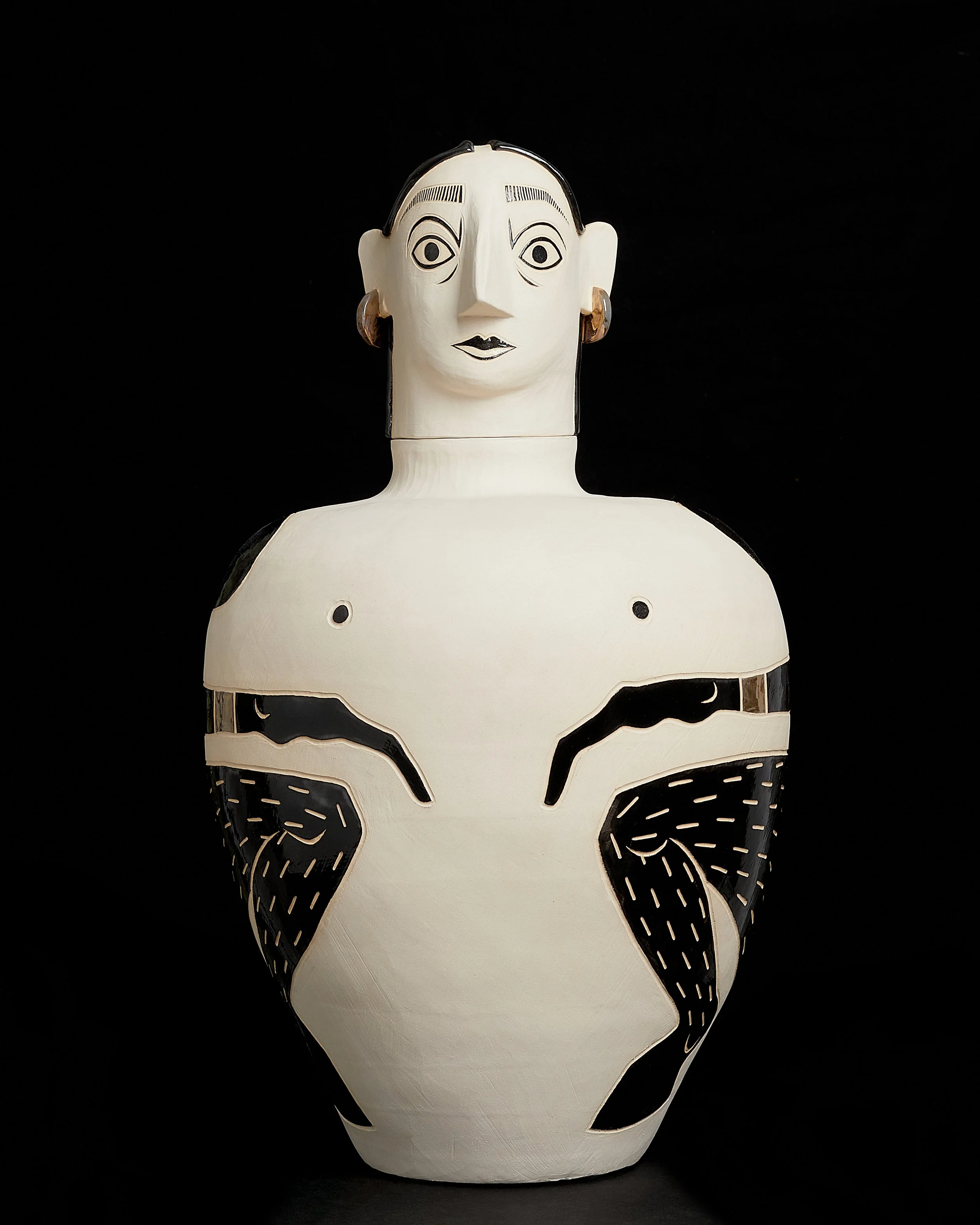 Lena Peters Goddess with Wings, 2020 White paperclay, coloured underglaze, transparent glaze, gold lustre View Details →