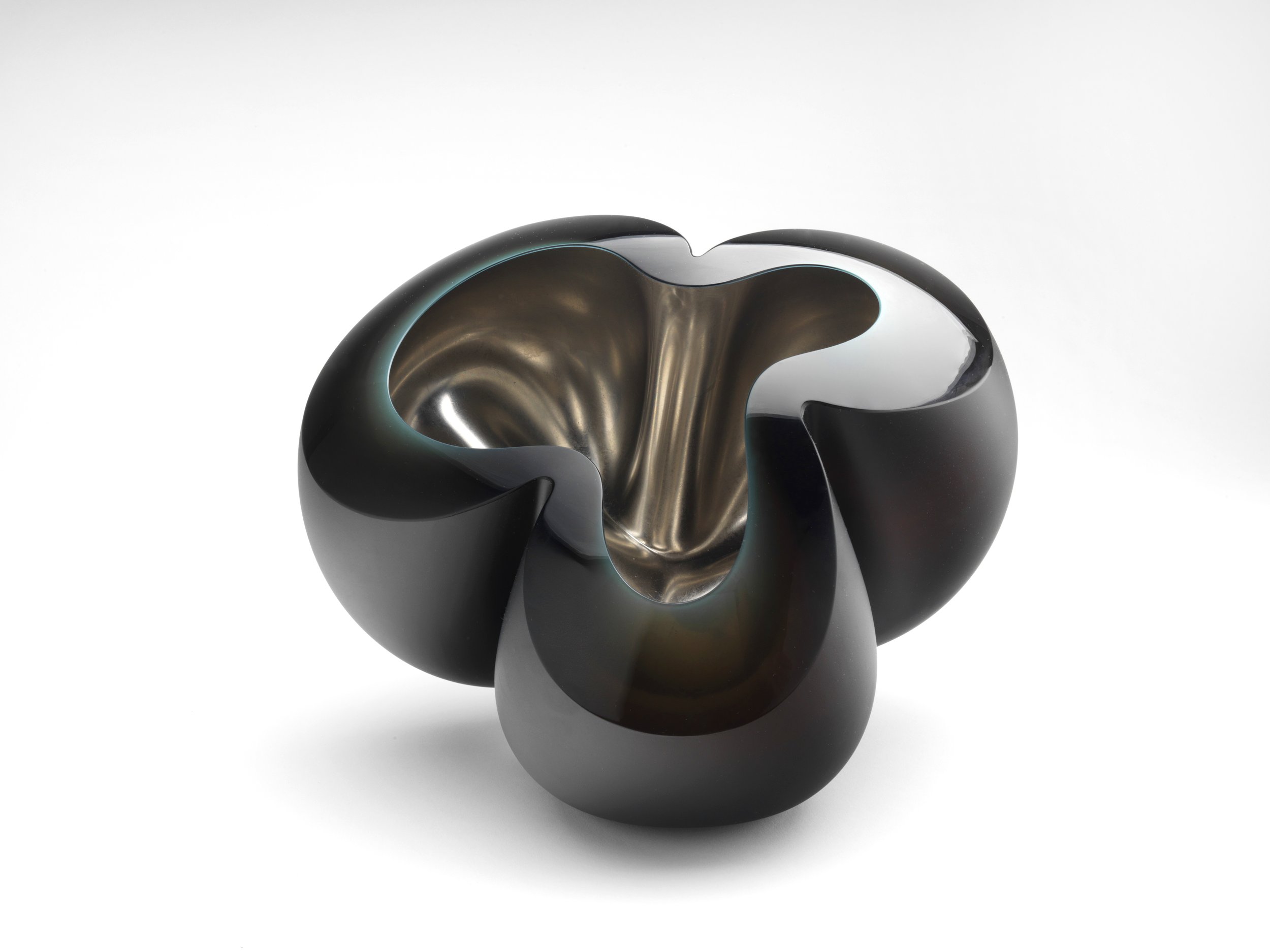 Presenting pieces hand formed in sandblasted and gilded glass, creating an interplay of colour and form through their sinuous curves by Dutch designer, Barbara Nanning. Alongside, new pieces in fumed oak and walnut, blended with steel and bronze by German designer, Valentin Loellmann and sculptural glass vases by Marcantonio Brandolini D’Adda.