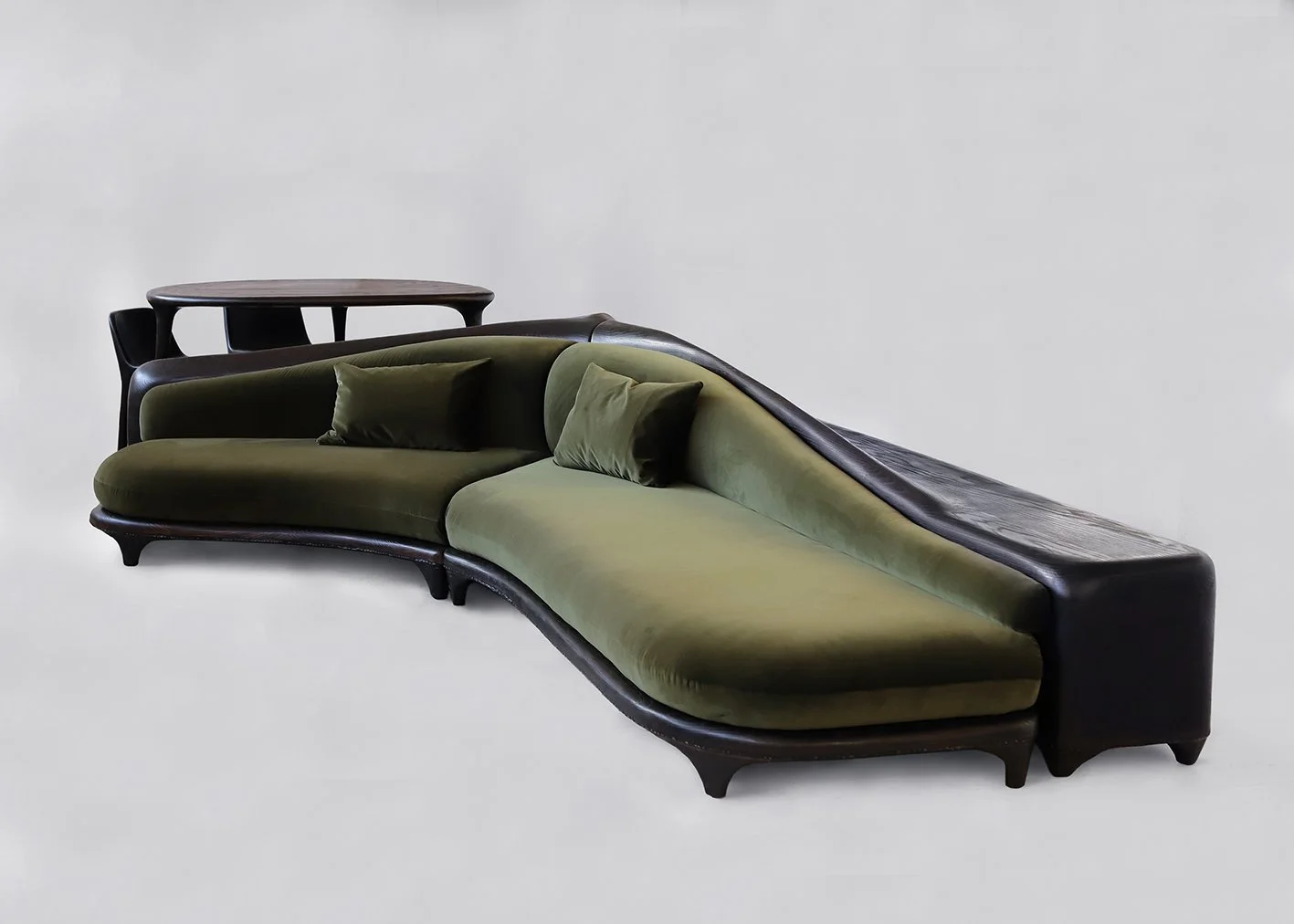 Valentin Loellmann Lounge set, 2025 Charred oak, patinated steel, velvet View details →